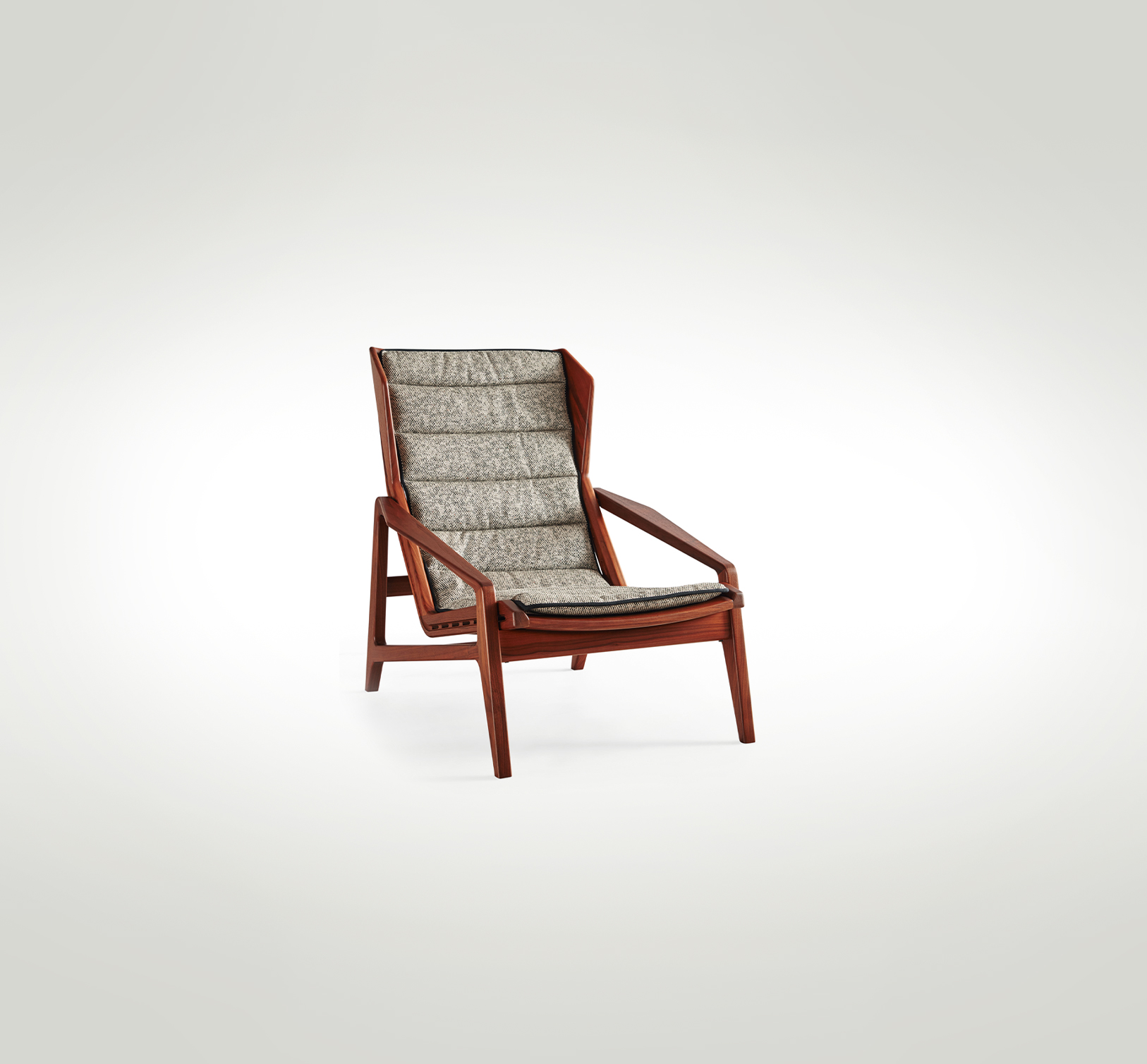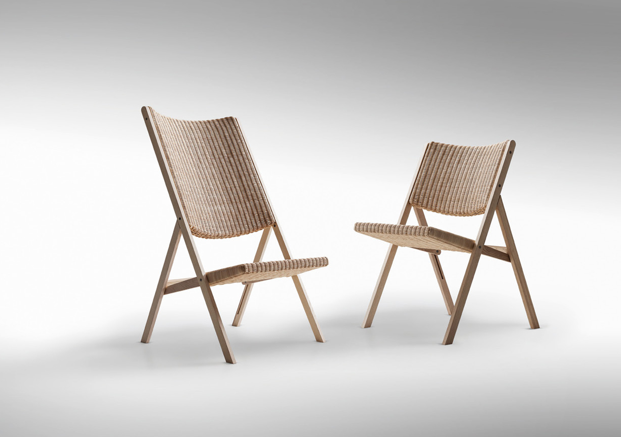 "And here is the new wide and narrow folding chair." This is how Gio Ponti described the creation of a dif­ferent chair. for conversation. reading or watching TV. 'To sit comfortably with your legs crossed. you need a small seat and a large back. reclining like this."